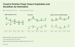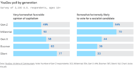 Here’s what is also interesting about this divide. It seems to be generational—not just political. Look at two recent polls that shows the disparity between how millennials and GenZ and Boomers view socialism and capitalism. (click on the image to see original source.)